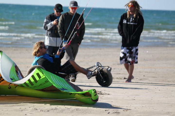 We did have enough to buggy though! Although it looks pretty kooky, riding in a buggy and blasting down the beach with a 12m Envy doing mega powerslides is about as much fun as you could ever ask for in 8-10 knots! So no kiteboarding today but lots of buggying and a few refreshments here and there!